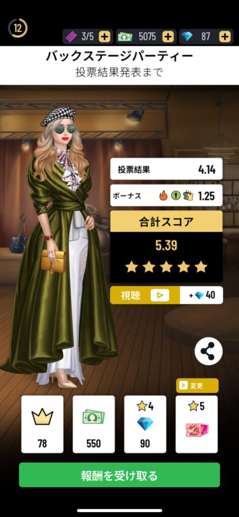 ③自分のコーデも他プレイヤーに投票されるので結果出るのをを待つ