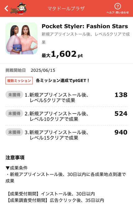 【ポイ活】Pocket Styler : Fashion Sters レベル15 攻略記録