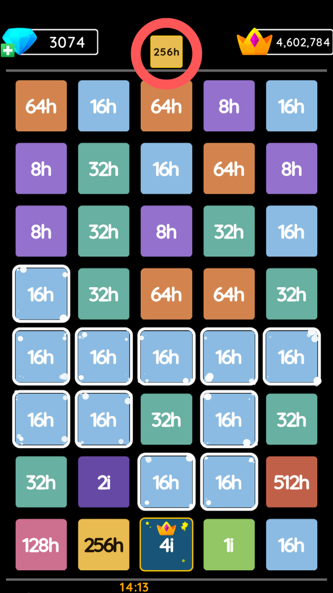 2048パズルなんですが、2つ以上同じ数字が並んでいるところをタップして合体、そしてどんどん数字を大きくしていくゲームです。