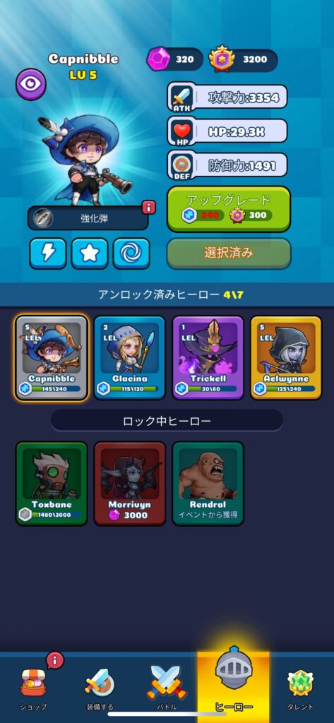 3000ダイヤでヒーローを開放できますが、もったいないのでショップで使う方がおすすめ。
