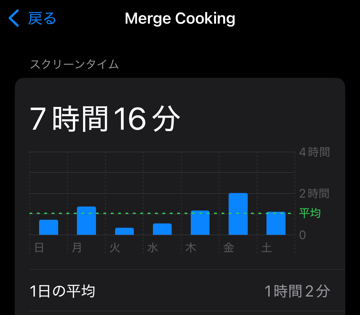 リタイア直近のスクリーンタイムはこんな感じです。一日の平均が1時間ほど。