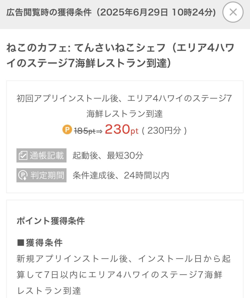 【ポイ活】ねこのカフェ てんさいねこシェフ エリア4ハワイのステージ7 海鮮レストラン 到達!