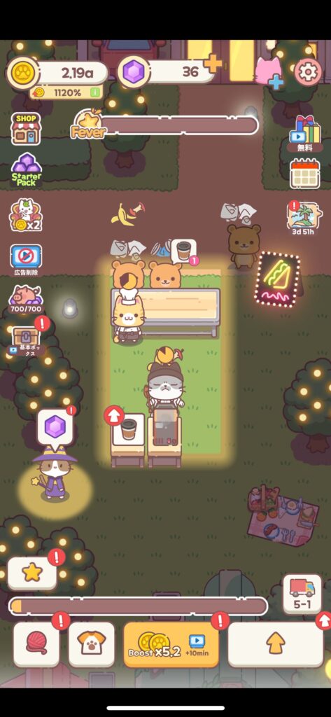画面下の中央に表示されているブーストは、広告視聴により10分間有効化することができます。