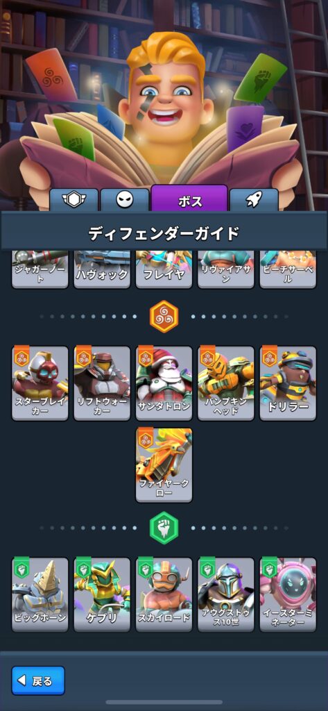ちなみに、登場する敵はメインチャプターの下にある、小さいアイコンをタップすると確認するとができます。ボスのクラスはホーム右上の三本線→ガイドから確認することができます。
