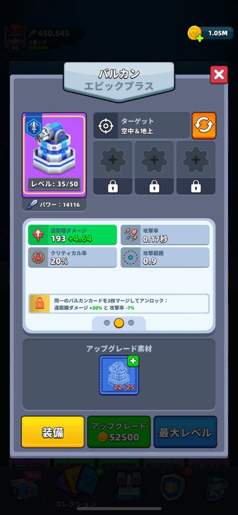 注意点として、バルカンは「迅速」クラスになるので「前衛」クラスの敵に対してはダメージが通りにくいです。