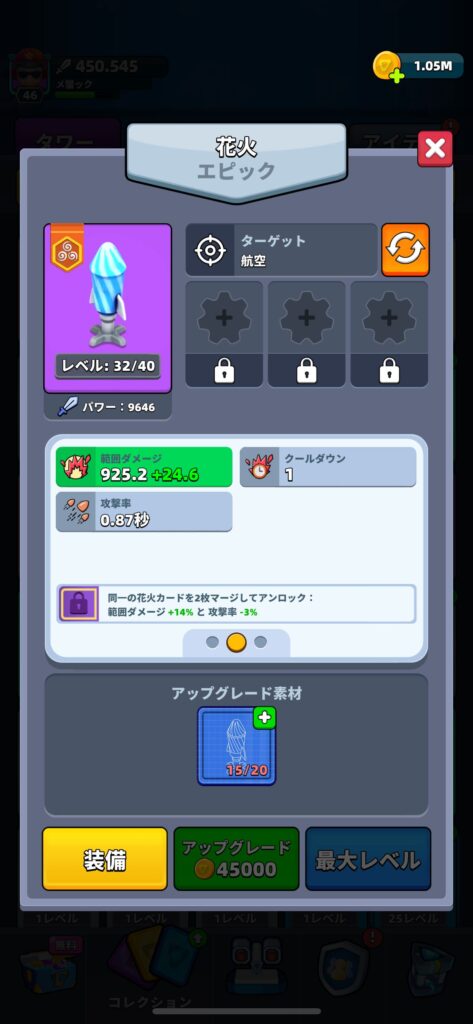 始めたころはクラスの相性が大事では?と思っていましたが、結局は使うタワーを絞って重点的に育てた方がいいのではないかと思います。
