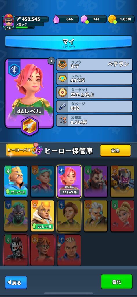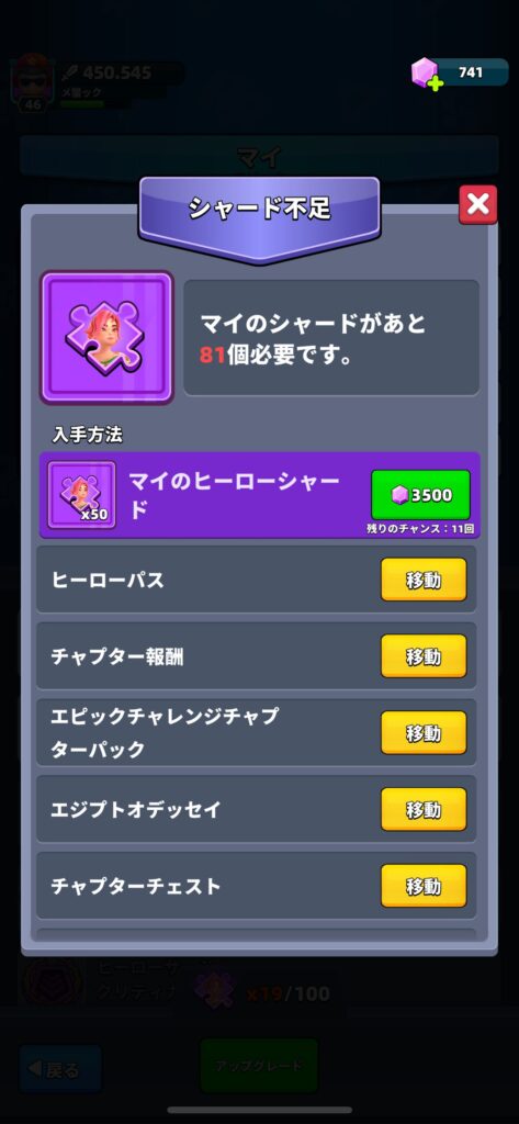 ヒーローはチャプター7で解放されるのですが、1,500ジェムで交換できるマイ一択だと思います。