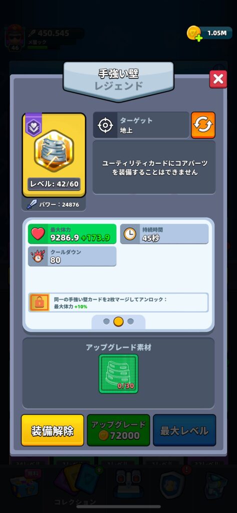 レアリティがエピックプラスとかになってくると、クールタイムがかなり短くなり、1個目の壁が消える前に2個目を置けたりもします。