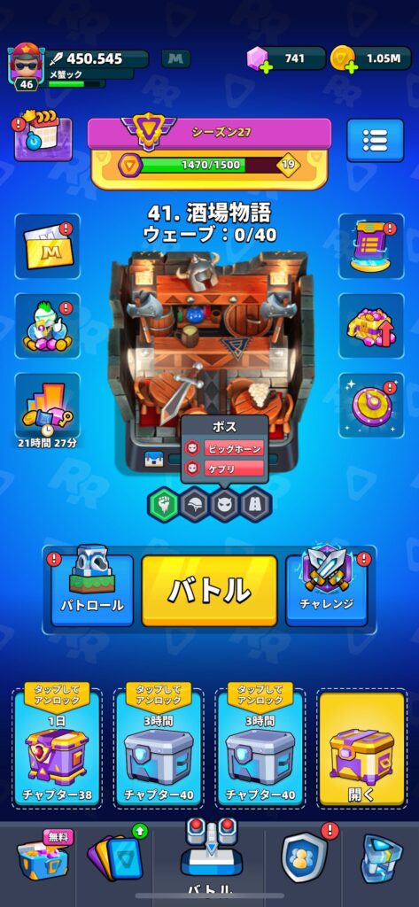 ただ、メインの最新ステージがもう少しでクリアできそうというときは、運よくクリアできたらラッキーの気持ちでメインを周回していました。