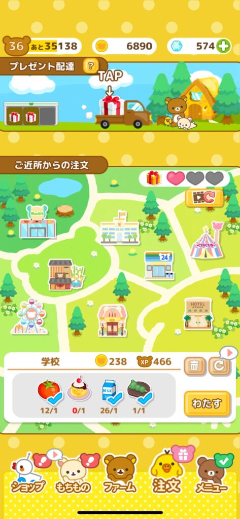 リラックマたちと作物やスイーツなどを生産、納品していきます。
