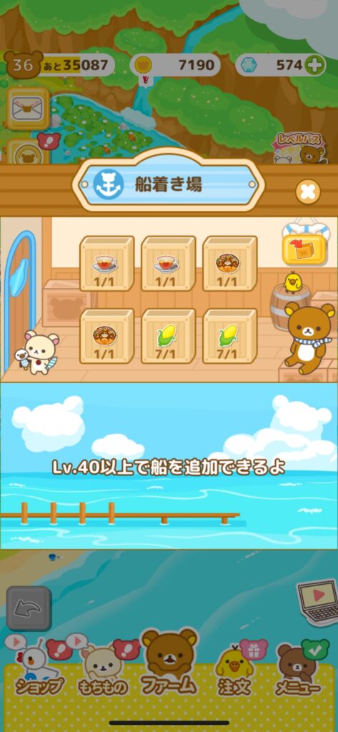 また、余裕があれば「船着き場」>「注文」の順でこちらも納品していきましょう。