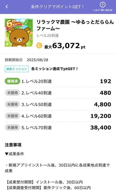 ☑条件・報酬:スクリーンショット参照(合計6,307円分)