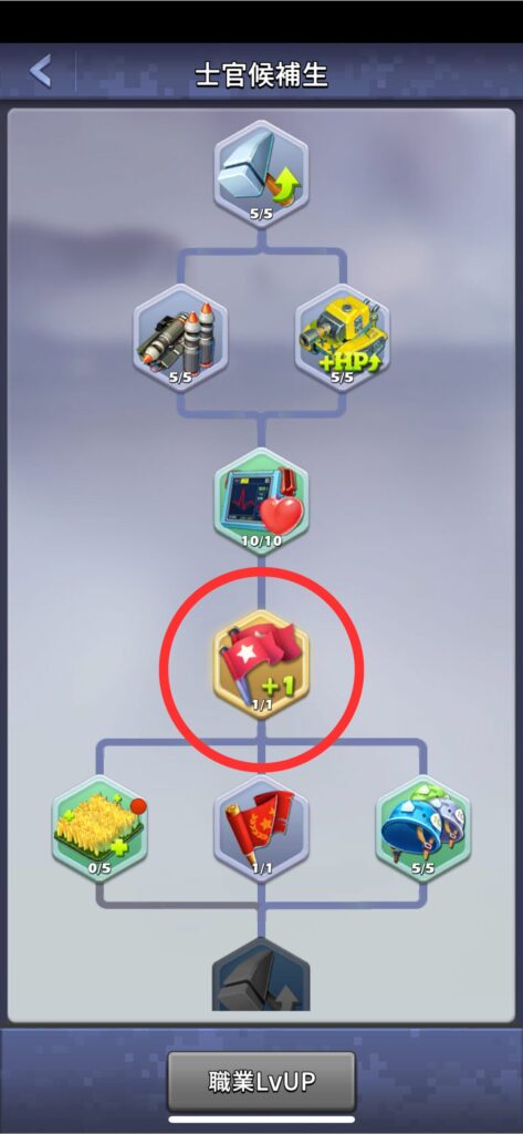 ちなみに初めは、同時に集結をかけられるのは2枠までですが、指揮学院という施設の士官候補生の中にある「勇往邁進」という項目を研究すると、3枠まで進軍できるようになり効率が上がりますよ。