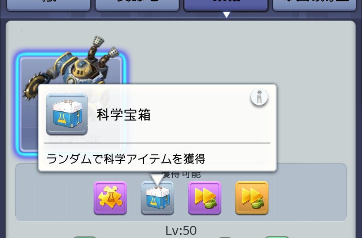 ハンマー4Kからドロップする「科学宝箱」というアイテムから素材が手に入るので、ゲットしたら忘れすに使いましょ。